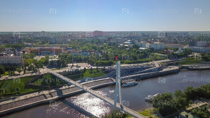 Город Тюмень, Набережная реки Туры, Мост Влюбленных. Россия, Тюмень, Из Дрон