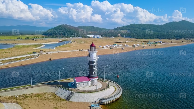 Россия, озеро Байкал. Маяк на берегу озера. Устье реки Турка, От Дрона