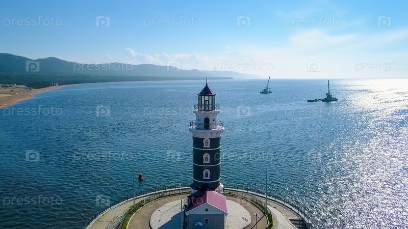 Россия, озеро Байкал. Маяк на берегу озера. Устье реки Турка, От Дрона