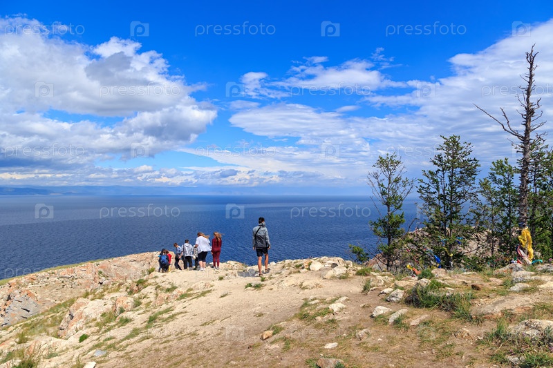 Россия, Ольхон. К северу от острова Ольхон. Туристы на берегу наблюдают за Байкалом в ветреную погоду