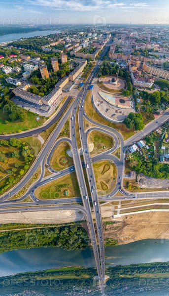 Калуга, Россия. Панорама города с воздуха. Автомобильная развязка. С высоты птичьего полета