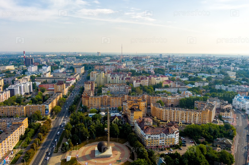 Калуга, Россия. Центральная часть. Панорама города с воздуха. С высоты птичьего полета