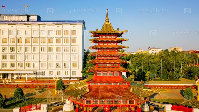 Пагода семи дней - Пагода на центральной площади Ленина в городе Элиста, Калмыкия, Россия