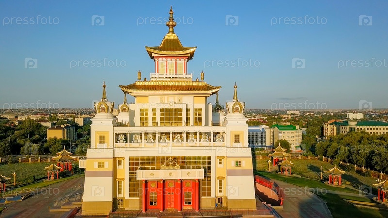 Золотая обитель Будды Шакьямуни на рассвете — крупнейший буддийский храм Республики Калмыкия, один из крупнейших буддийских храмов Европы. Элиста, Россия