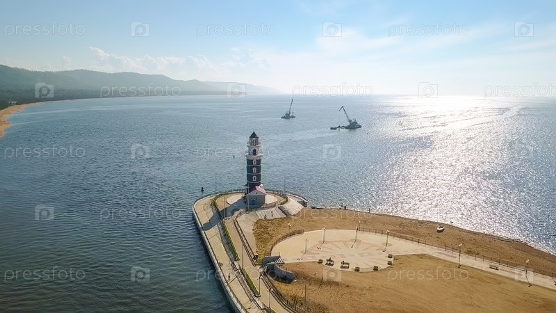 Россия, озеро Байкал. Маяк на берегу озера. Устье реки Турка, От Дрона