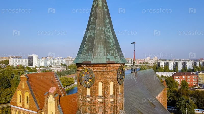 Башня с часами. Калининградский собор на острове Канта. Россия, Калининград, С Дрона