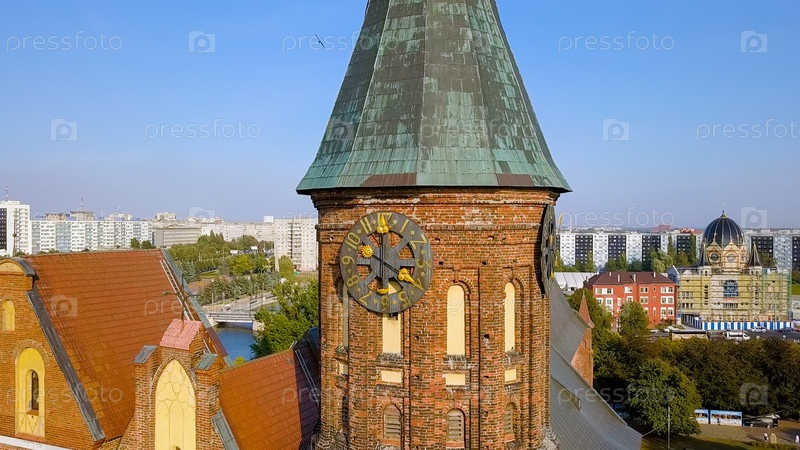 Башня с часами. Калининградский собор на острове Канта. Россия, Калининград, С Дрона