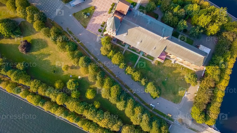 Калининградский собор на острове Канта. Россия, Калининград, С дрона, СЪЕМКА ГОЛОВЫ НАД