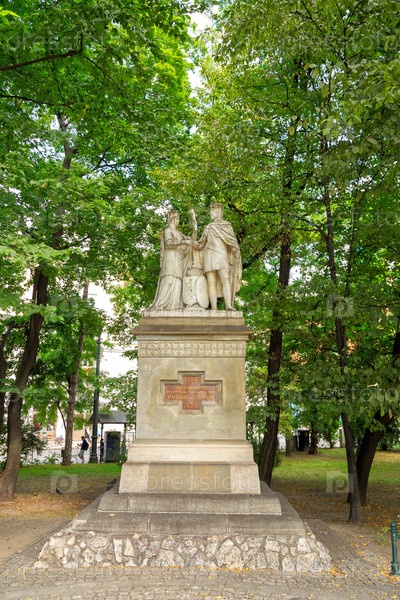 Краков, Польша. Памятник Ядвиге и Ягайло. Этот Мемориал посвящен 500-летию польско-литовской унии. Основан в 1886 году. Архитектор Оскар Сосновский (1880-1939)