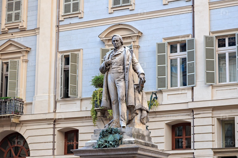 Турин, Италия. Памятник Винченцо Джоберти. Скульптура, посвященная государственному деятелю и философу Винченцо Жоберти (1801–1852), выполнена Джованни Альбертони (1806–1887)