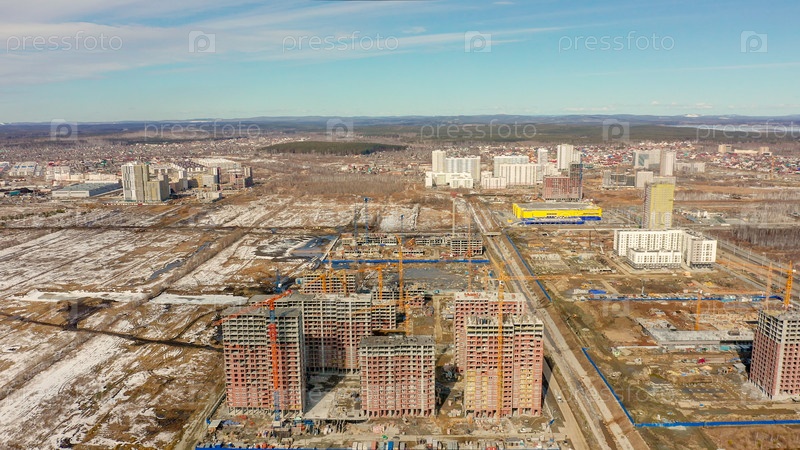 Россия, Екатеринбург. Районный академический. Строительство новостроек на окраине района, От Дрона