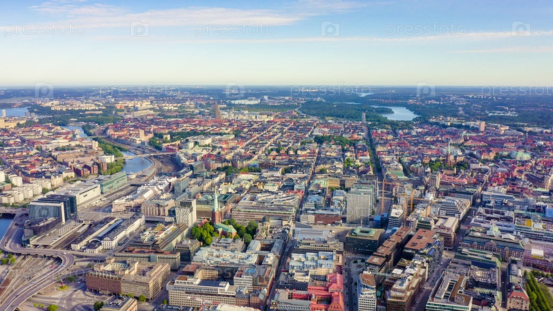 Стокгольм, Швеция. Панорамный вид с воздуха на центр города, с дрона