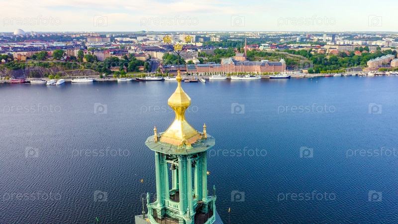 Стокгольм, Швеция. Стокгольмская ратуша. Стокгольмский стадшус. Построен в 1923 году, ратуша из красного кирпича, From Drone