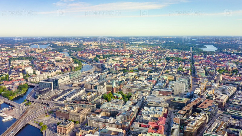 Стокгольм, Швеция. Панорамный вид с воздуха на центр города, с дрона