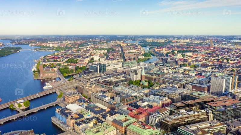 Стокгольм, Швеция. Панорамный вид с воздуха на центр города, с дрона
