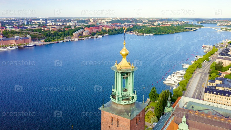 Стокгольм, Швеция. Стокгольмская ратуша. Стокгольмский стадшус. Построен в 1923 году, ратуша из красного кирпича, From Drone