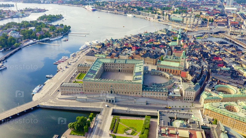 Стокгольм, Швеция. Королевский дворец в Стокгольме. Слот Кунглига. Вид с воздуха, с дрона