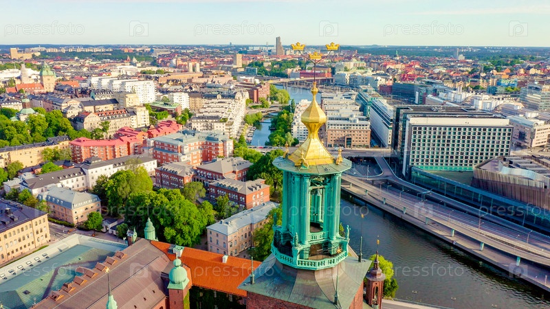 Стокгольм, Швеция. Стокгольмская ратуша. Стокгольмский стадшус. Построен в 1923 году, ратуша из красного кирпича, From Drone