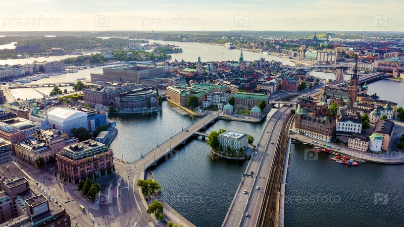 Стокгольм, Швеция. Старый город - Гамла Стан. Риддархольмен. Вид с воздуха, с дрона