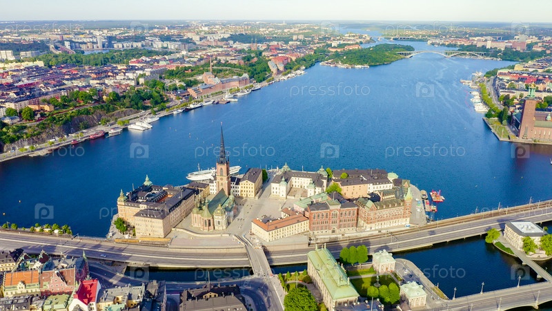 Стокгольм, Швеция. Старый город - Гамла Стан. Риддархольмен. Хельгеандсхольмен. Вид с воздуха, с дрона