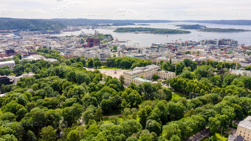 Осло, Норвегия. Королевский дворец. Слотсплассен. Дворцовый парк, От дрона
