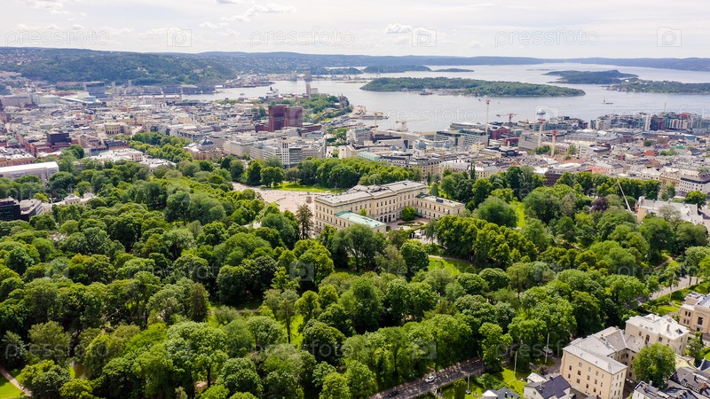 Осло, Норвегия. Королевский дворец. Слотсплассен. Дворцовый парк, От дрона