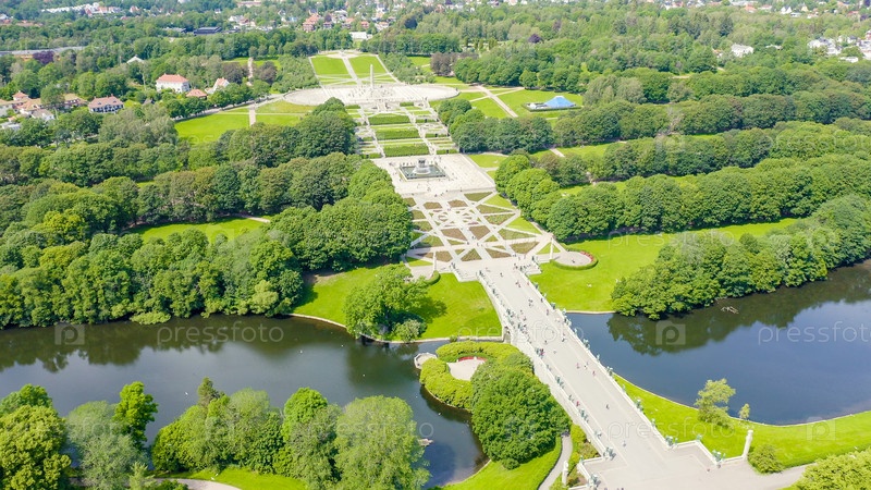 Осло, Норвегия. Парк скульптур Вигеланда. Вигеландпаркен. Парк Фрогнер, От дрона