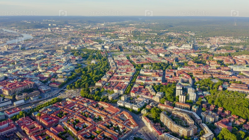 Гетеборг, Швеция. Панорама центральной части города. Закат, С Дрона