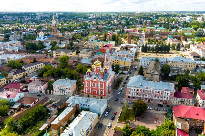 Елец, Россия. Церковь Архангела Михаила в Ельце. С высоты птичьего полета