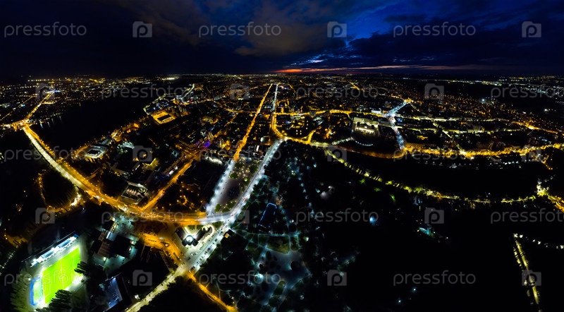 Липецк, Россия. Огни ночного города. Панорама. С высоты птичьего полета