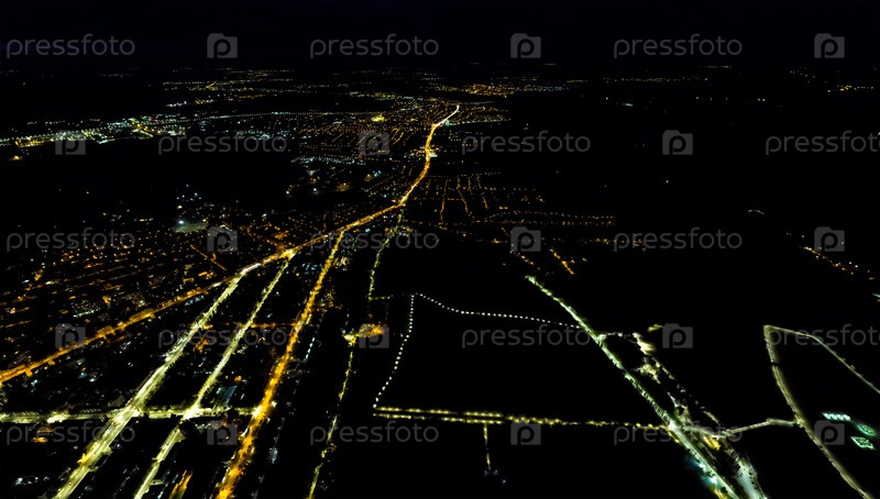 Липецк, Россия. Огни ночного города. Панорама. С высоты птичьего полета