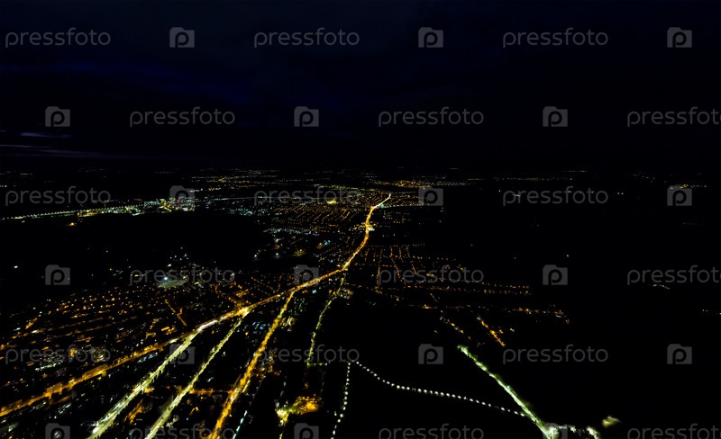 Липецк, Россия. Огни ночного города. Панорама. С высоты птичьего полета