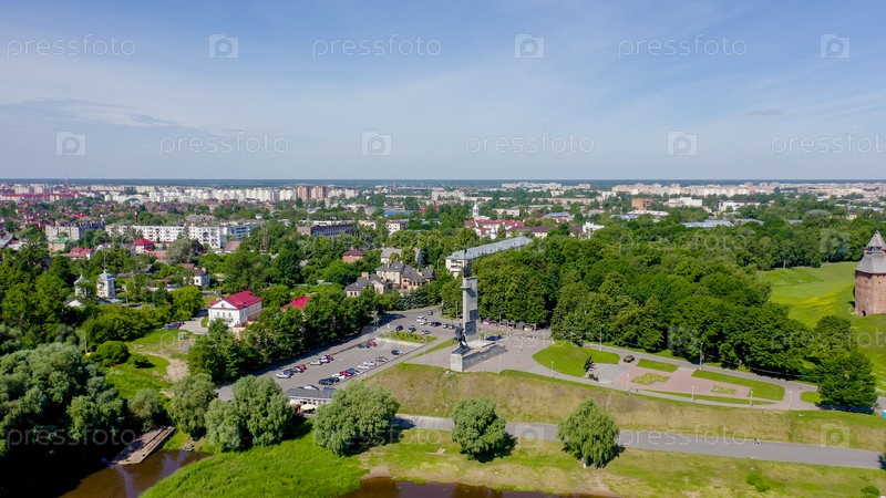 Великий Новгород, Россия. Памятник Победы. Новгородский Кремль (Детинец), Река Волхов, От Дрона