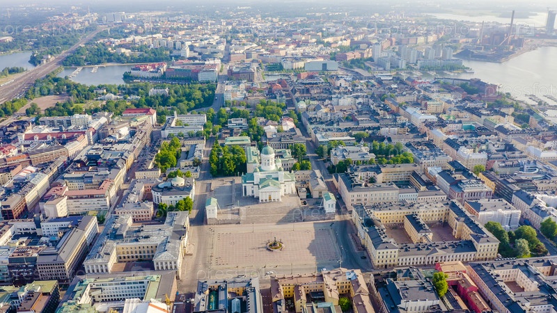 Хельсинки, Финляндия. Вид с воздуха на центр города. Хельсинкский собор. Сенатская площадь, От Дрона