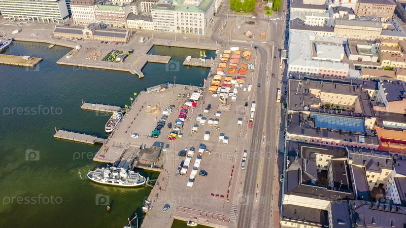 Хельсинки, Финляндия. Вид с воздуха на центр города. Рыночная площадь, от дрона