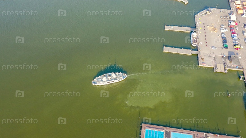 Хельсинки, Финляндия. Вид с воздуха на центр города. С корабля на панораму города, С дрона