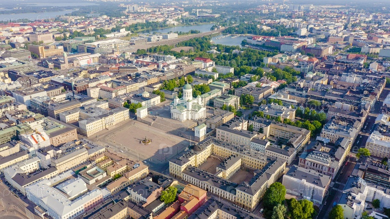Хельсинки, Финляндия. Вид с воздуха на центр города. Хельсинкский собор. Сенатская площадь, От Дрона