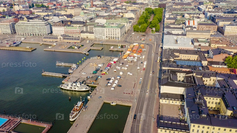 Хельсинки, Финляндия. Вид с воздуха на центр города. Рыночная площадь, от дрона