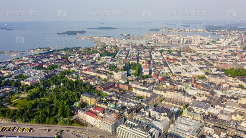 Хельсинки, Финляндия. Вид с воздуха на центр города. Церковь Иоанна, От Дрона