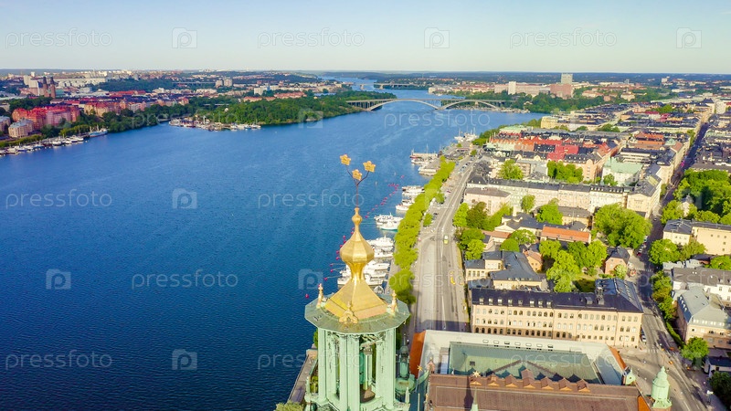 Стокгольм, Швеция. Стокгольмская ратуша. Стокгольмский стадшус. Построен в 1923 году, ратуша из красного кирпича, From Drone