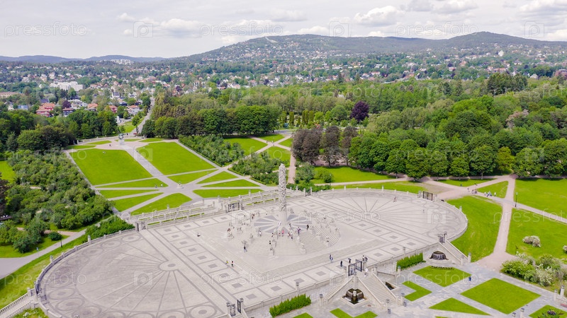 Осло, Норвегия. Парк скульптур Вигеланда. Вигеландпаркен. Парк Фрогнер, От дрона