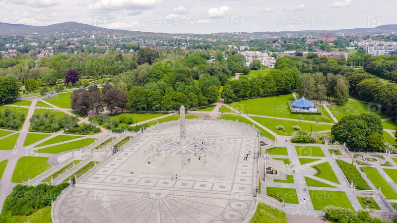 Осло, Норвегия. Парк скульптур Вигеланда. Вигеландпаркен. Парк Фрогнер, От дрона