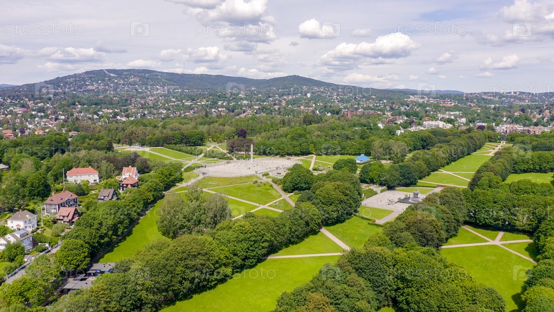 Осло, Норвегия. Парк скульптур Вигеланда. Вигеландпаркен. Парк Фрогнер, От дрона