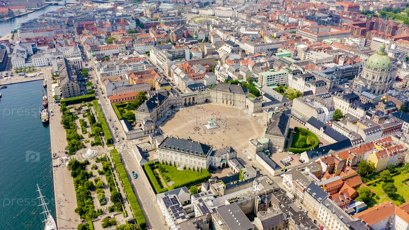 Копенгаген, Дания Амалиенборг Дворцовый комплекс XVIII века в стиле рококо От дронов