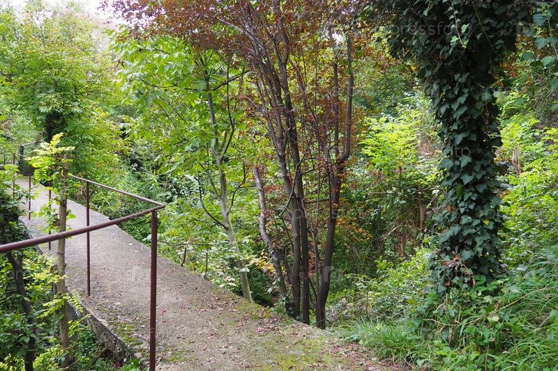 Баня Ковиляча, Сербия, Лозница, гора Гучево. Старый узкий бетонный мост через горную реку с металлическим забором. Заросли кустарников, плющ, лианы, деревья вокруг моста. Прогулка на природе