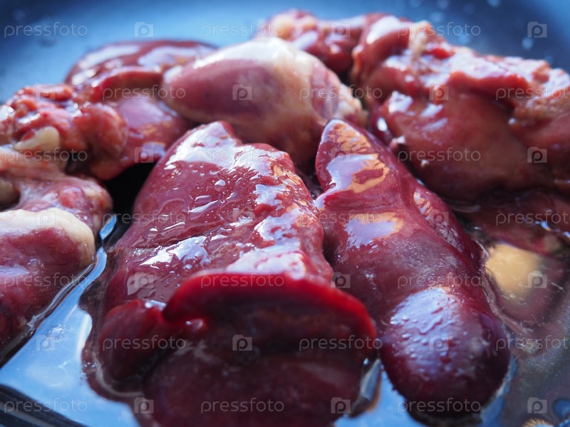 Куриную печень, почки и сердце в сковороде с антипригарным покрытием. Потроха птицы помещают в темную посуду и сбрызгивают растительным маслом. Приготовление пищи с высоким содержанием гемового железа. Антианемическая диета