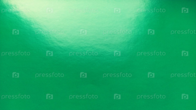 Зеленый лист блестящей цветной бумаги. Отражающая поверхность бликует на свету. Яркий интенсивный цвет. Красивый фон. Изюминка