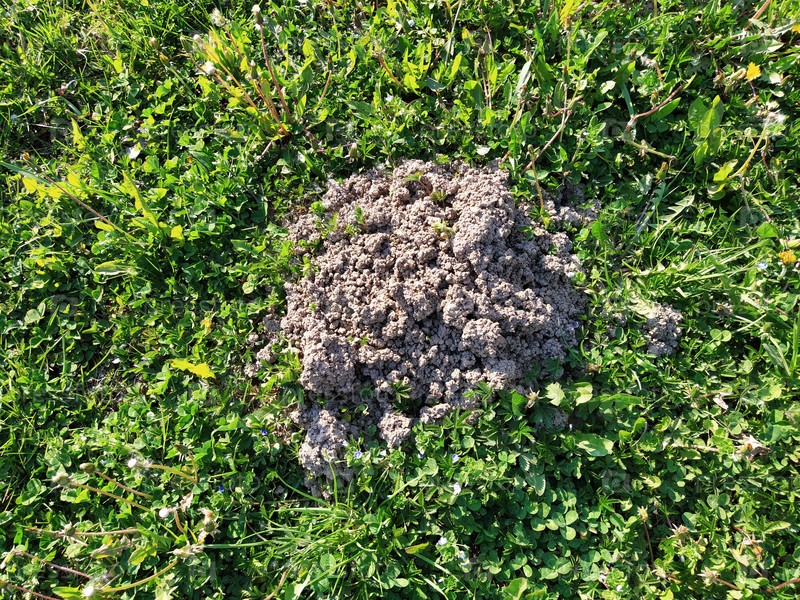 Куча земли, выкопанная кротом. Разрыхленная почва. Сербия, работа земляного крота. Глинистая почва