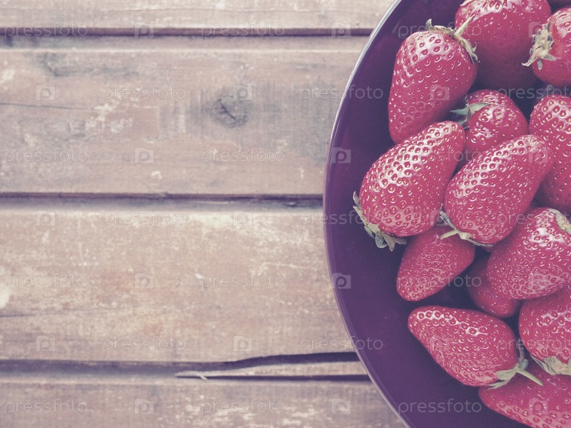 Клубника на тарелке, деревянный фон. Темная керамическая посуда и вкусная красная крупная садовая клубника. Здоровое питание, витамины и вегетарианская диета. Натюрморт с едой. Скопируйте пространство. Плоская планировка