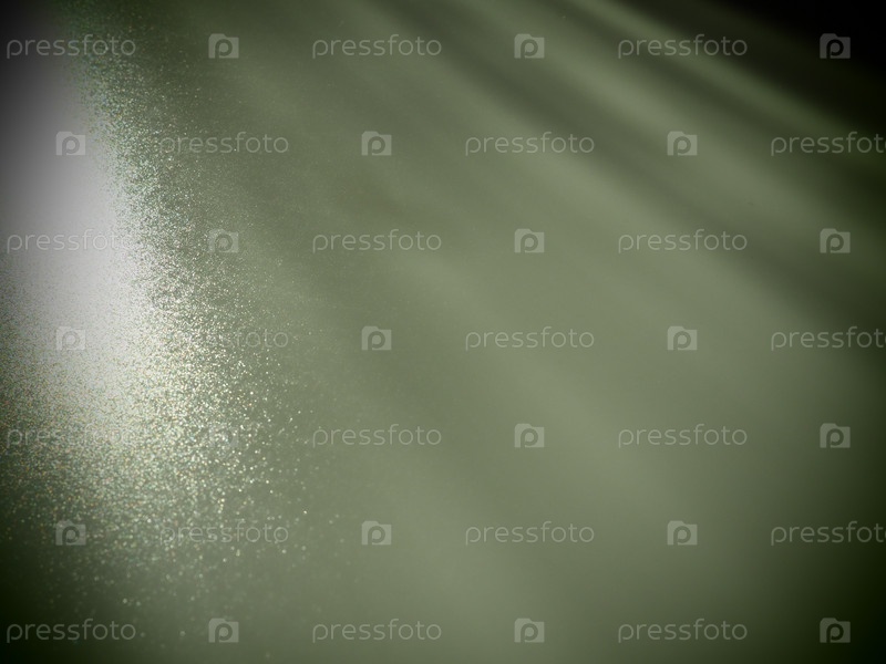 Абстрактный зеленый фон. Косые лучи света на сером фоне с мерцающими точками. Слева вверх линии направлены вниз и вправо. Светиться, вспыхивать или сиять. Боковое освещение. Маленькое свечение